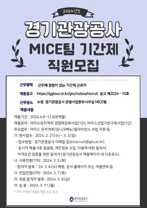 경기관광공사 마이스팀 기간제 채용!!(~3.3)